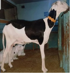 Monstre, c’est un très joli mâle issu d’une très bonne lignée. Il est descendant direct de Algore/Birahim coté père et Flavia/Diallo. Il est un sujet très beau à voir de par la couleur de sa robe ( noire dominante et blanche), la longueur de sa queue, la taille de sa tête (grosse), la symétrie de ses cornes et la silhouette de son ossature. Ces mensurations lui ont valu d’être, entre autres de sa génération, un des meilleurs mâles qui a marqué son empreinte dans l’élevage du ladoum. De ce qui précède, l’on retient que c’est un mâle au capital génétique exceptionnel laissant derrière lui une bonne progéniture qui continue d’impressionner le monde de l’élevage et de contribuer à l’amélioration de la race. Entre autres, ses fils et petits-fils sont champions